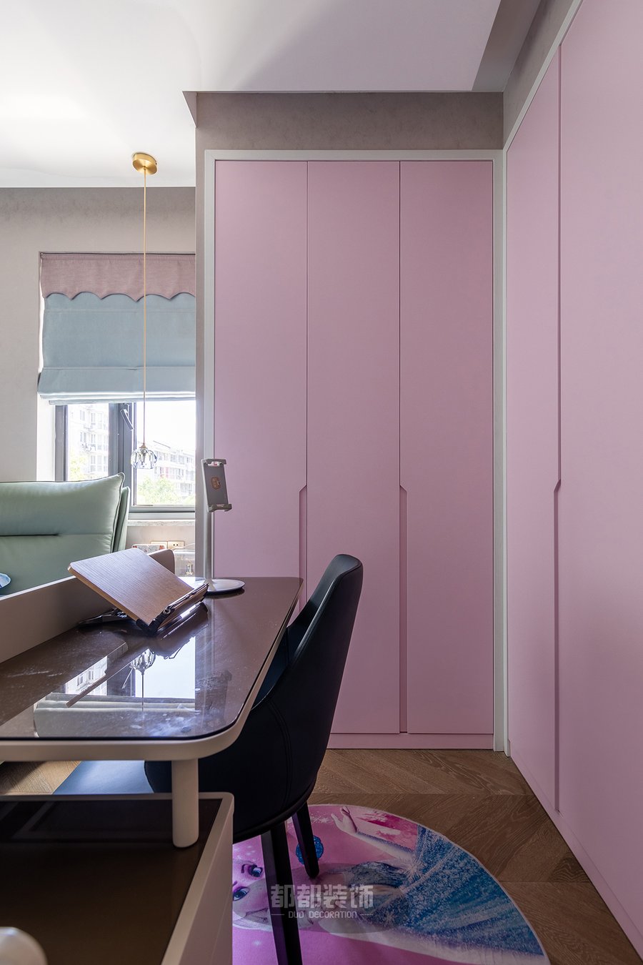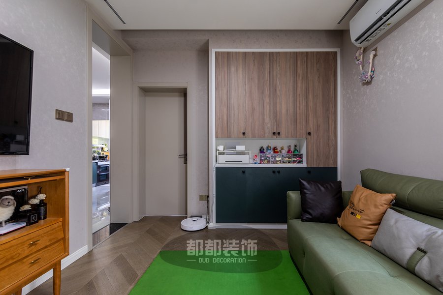 这个空间是屋主喜欢的其中一角,尤其是阳光正好的下午,清风正温柔,忙忙碌碌的生活,琐碎繁杂的事务,在这一刻放慢了脚步,可以陪着孩子看看动画片。