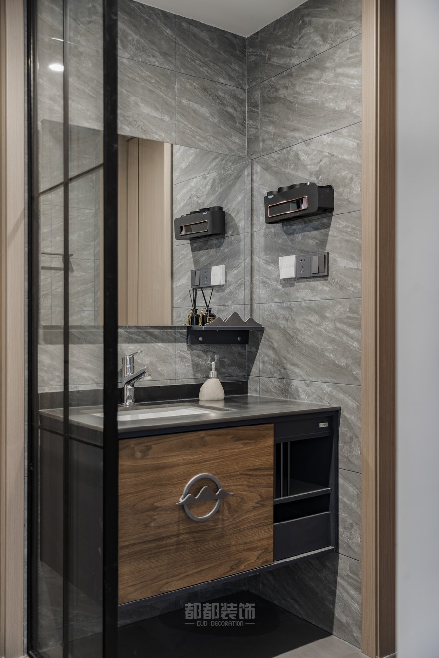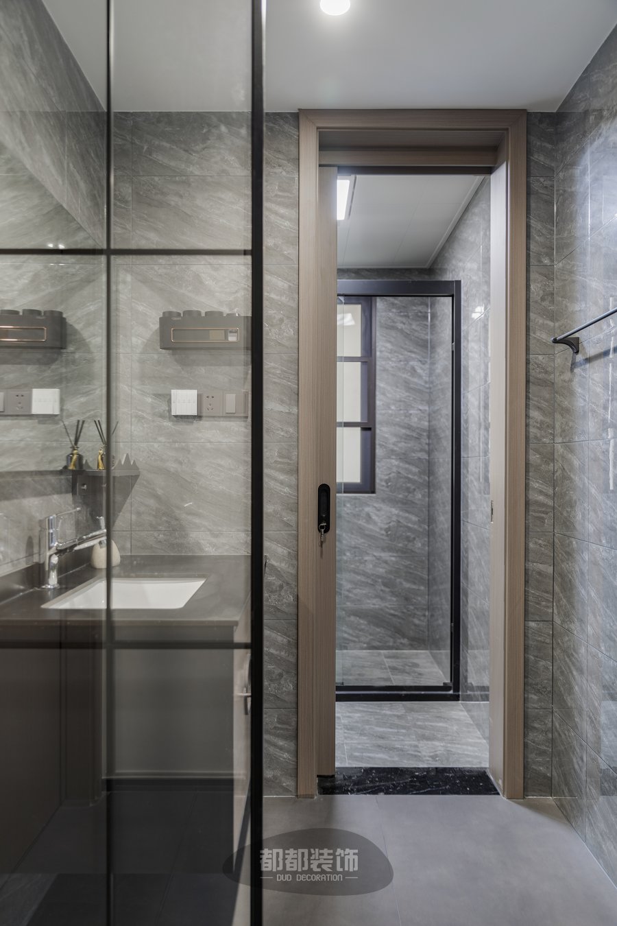 作为卫生间的标配,黑色+木饰面的浴室柜不仅是重要的收纳家具,也是最直观体现空间美感和品味的存在,原木作基调,加以岩板台面叠加,使得纵深感进一步加强,合理的分区设计,洗漱、淋浴、泡澡、如厕,各个功能区独立存在,动线流畅舒适。