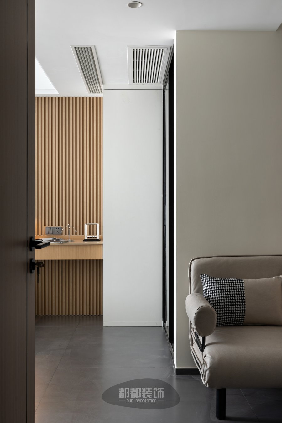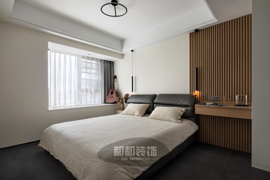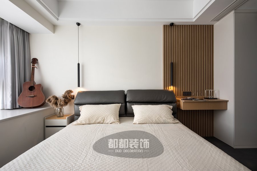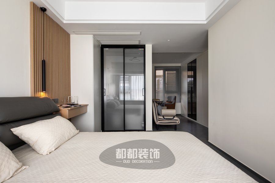 卧室是一道温柔的风,吹走工作的烦恼和生活的疲惫,主卧简洁有序的木饰面体现出空间的层次感,床头两侧线性灯设计感十足,柔和不刺眼。