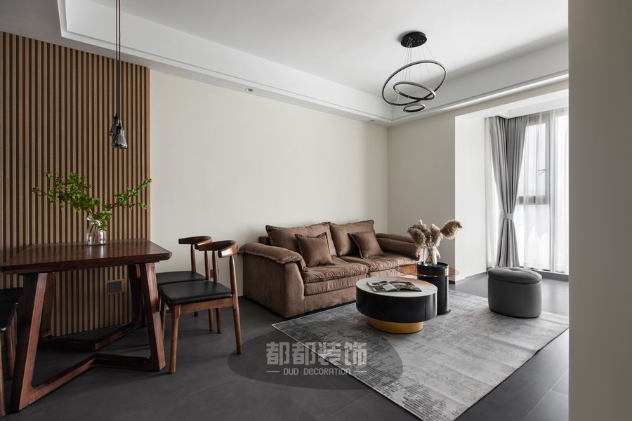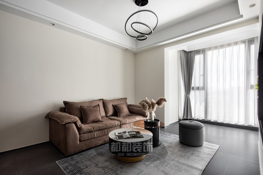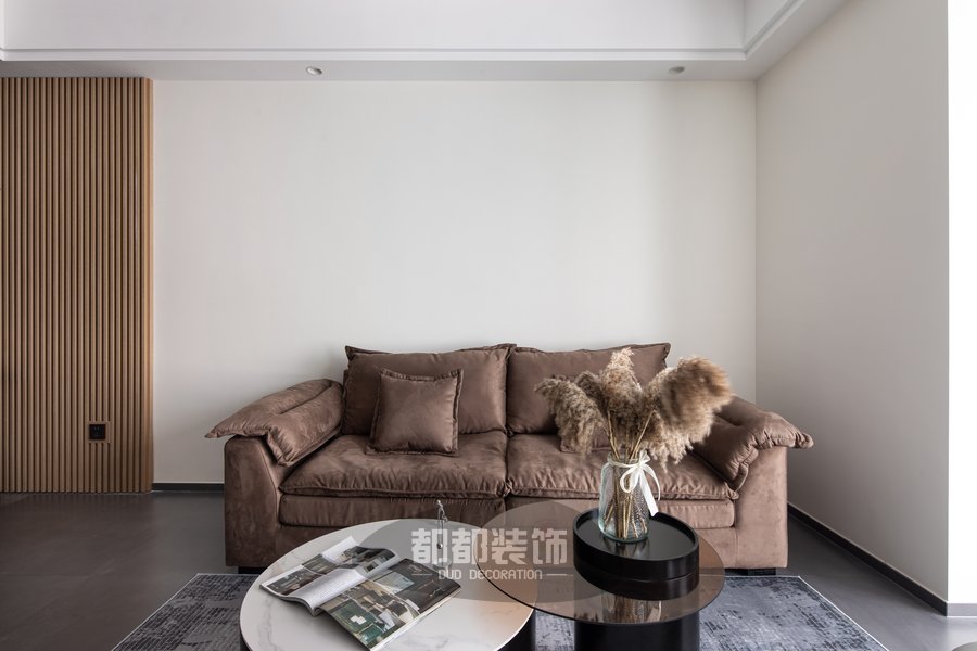 背景墙以当下流行的奶油系为主色调,点缀一些咖啡棕沙发来增加空间稳重感,超深坐宽在家就可以实现葛优躺,简直是为舒适而生的设计,磨砂布材质耐磨又耐刮,就算养只拆家哈士奇也能用上好几年。