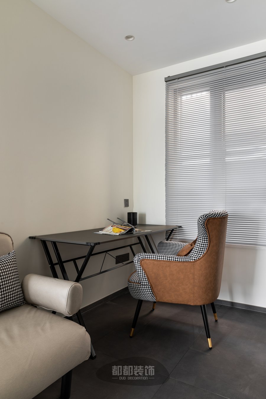 将次卧合到主卧中,主卧空间变得超级大,除了床头的悬浮书桌,还设计了单独的办公区域和衣帽间,简直是独居打工人的梦中情房。