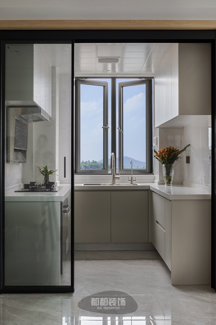 半敞开三联动移门能将客厅的光线不经意间带到厨房,空间更显通透。