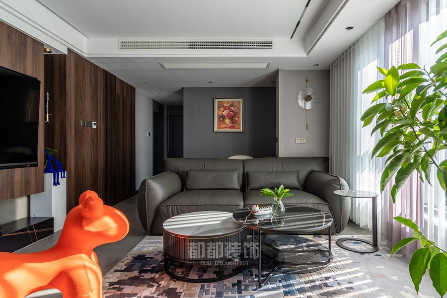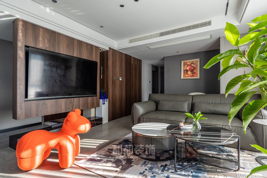 在阳光的照射下,沙发独特的光泽使家具倍感时尚,具有舒适与美观并存的享受,水培绿植在灰色沙发背景墙中显得格外生机勃勃,荧光橙小马造型的沙发椅童趣十足,鹿皮绒材质柔软细腻,坐上去都不舍得离开。