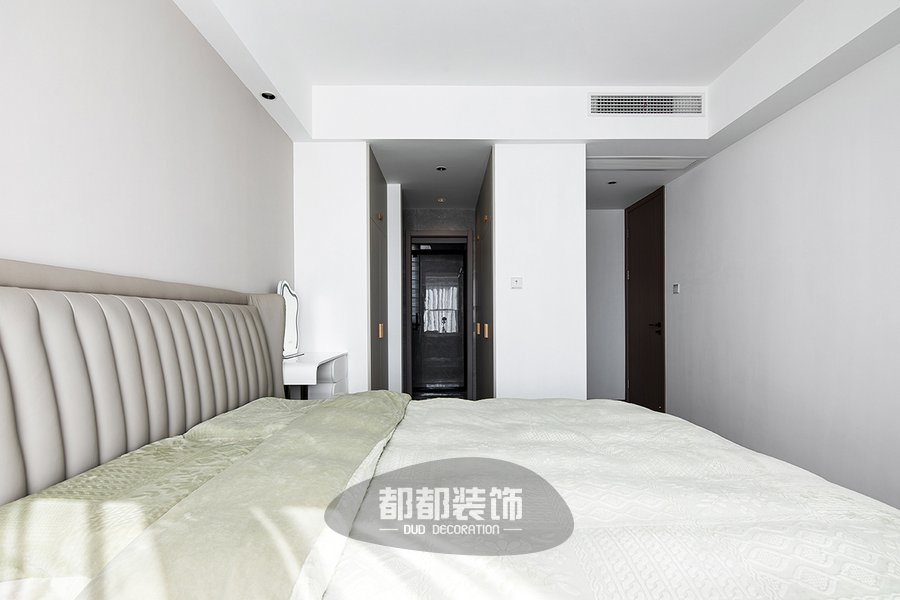 主卧自然舒适没有使用饱和度高的颜色,素雅的莫丹迪绿色简约养眼,地板木材纹路清晰有质感,在每一个宁静的夜晚,木香萦绕,让人心安。