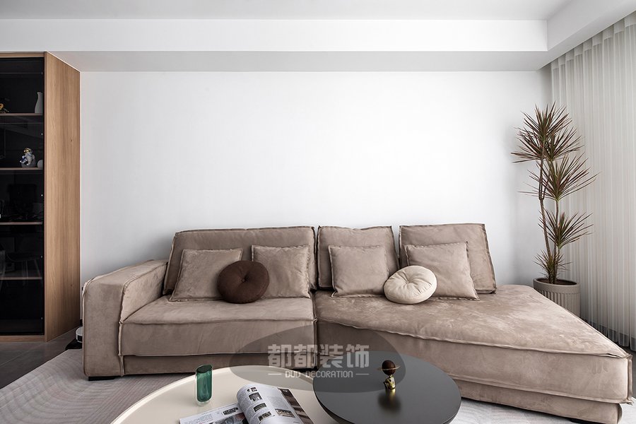 由异型造型构成的咖棕色沙发时尚独特,配合同色系植物,共同调和出高级的优雅韵味以及空间的浪漫主义气息,呈现优雅浪漫的腔调,在这里撸撸猫,看看剧,成年人的快乐就是这么简单!