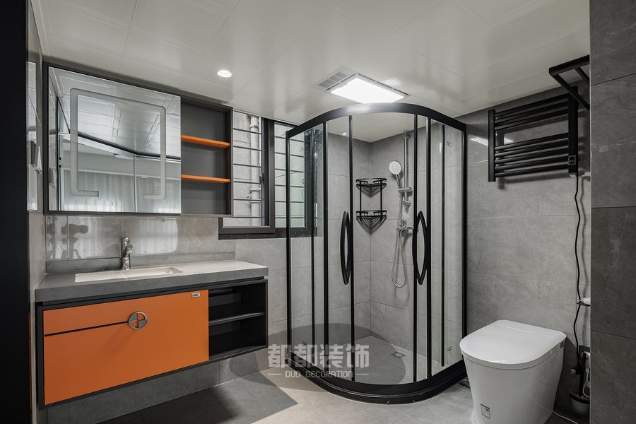 主次卫均做了干湿分离,大面积的大理石材质营造出空间的韵律感,洗手台做了大台盆,洗手台外移造型优美,又不用担心水花飞溅,配以银色水龙头美观而大方,在繁忙的生活中提高了洗漱享受,淋浴区宽敞干净,使家居生活更为放松舒适。