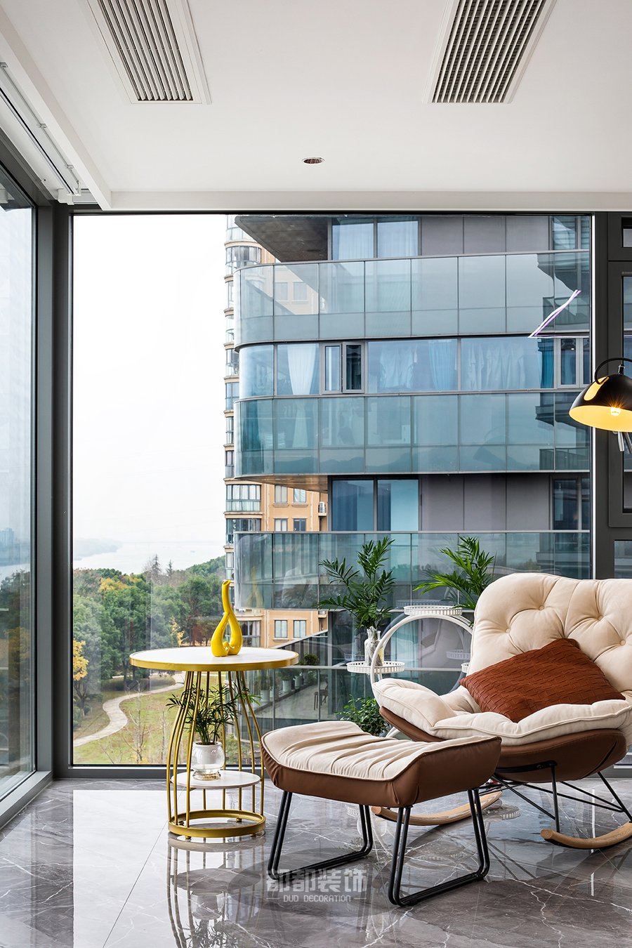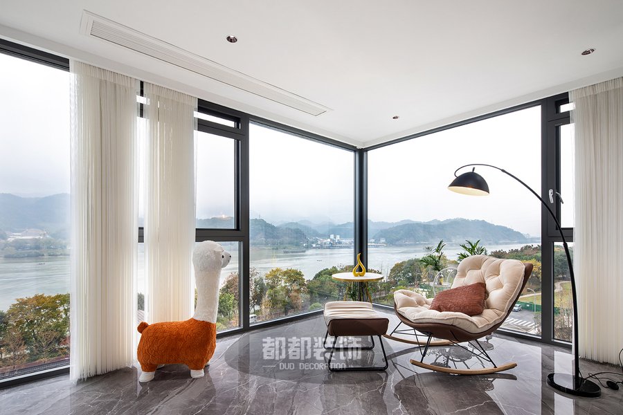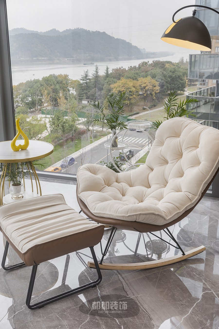 旁边的羊驼椅造型十分俏皮,搭配钓鱼灯,留下一片自在之地,随时可坐,随处可嬉,重新定义空间功能,打造开放式的阅读角,为居者留下静心阅读之地。