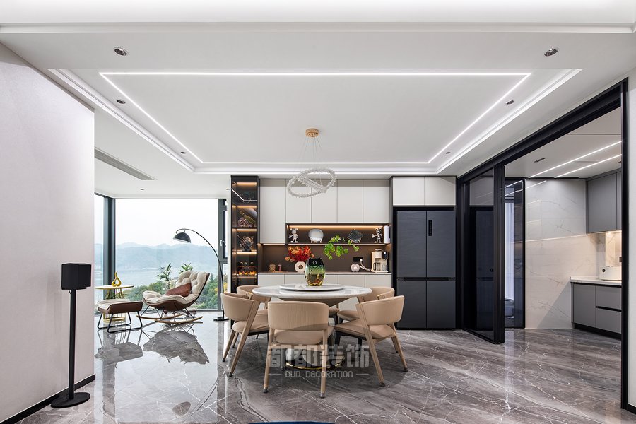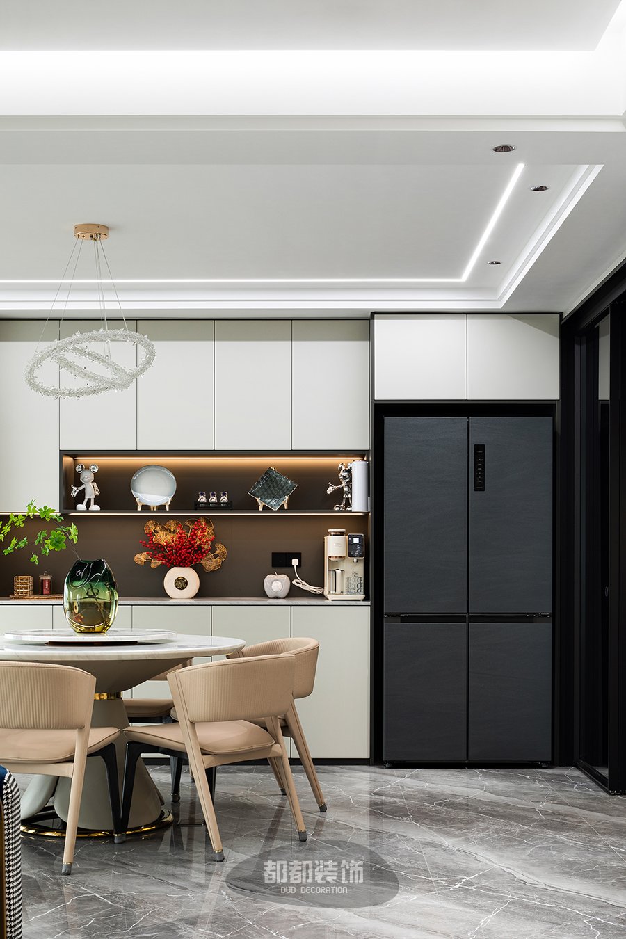 餐边柜与酒柜的结合增添了高档精致的气息,折射出吴小姐浪漫的内心,在闲暇时光喝喝小酒,一切尽在不言中。