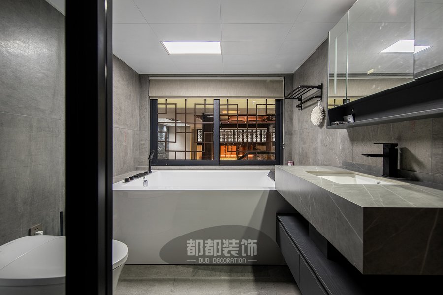 生活需要不同维度的表达,而卫浴空间恰是最合适的舞台,卫生间的一器一物,经得起时间的洗礼,中式镂空窗户与风格呼应,入睡前将身体泡进装满热水的浴缸里,让一天的疲惫随着蒸汽一起消散,静静地独享这幸福的闲暇时光~