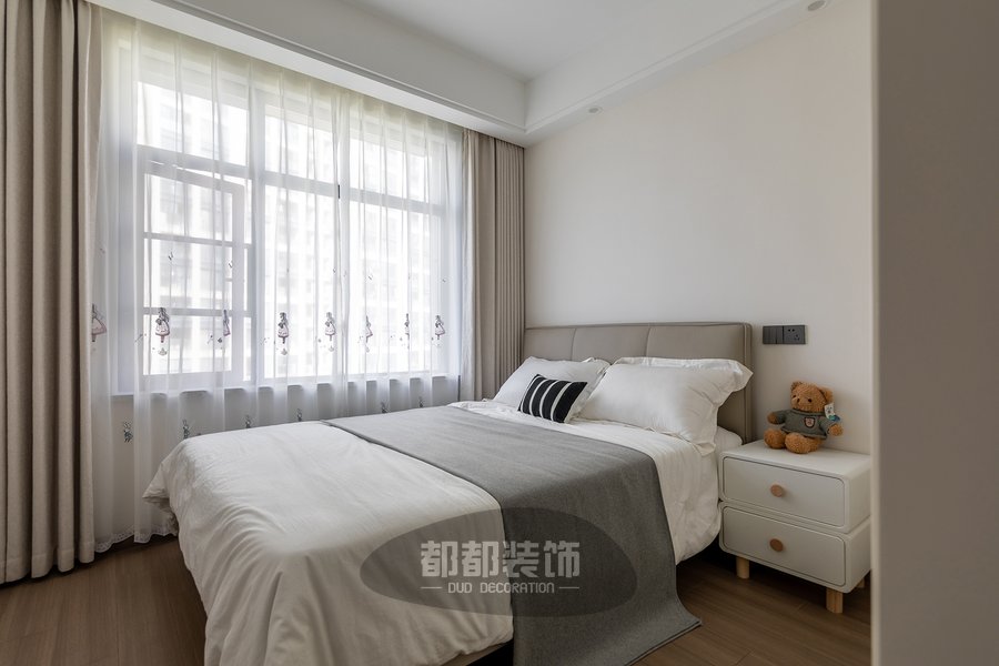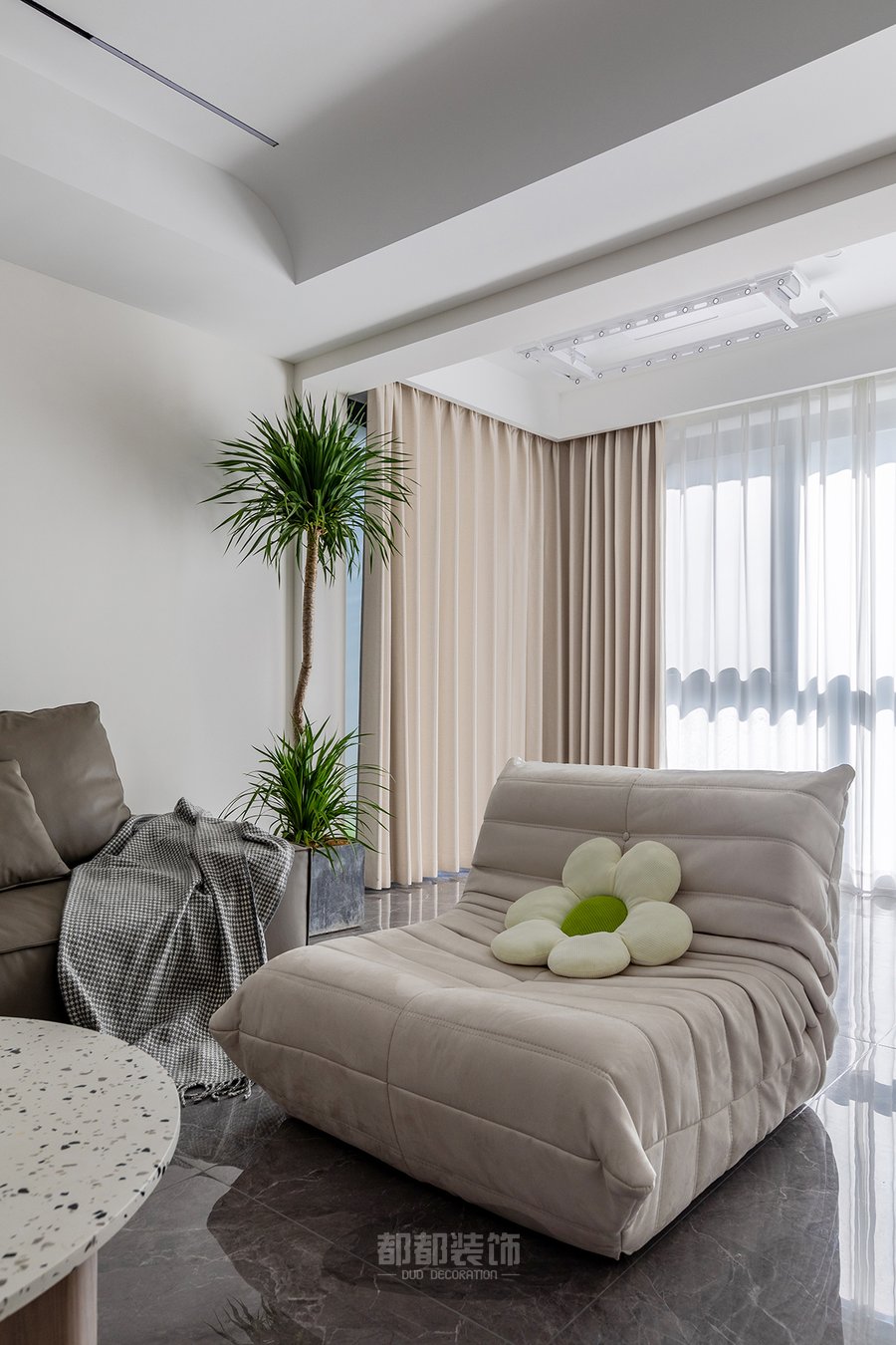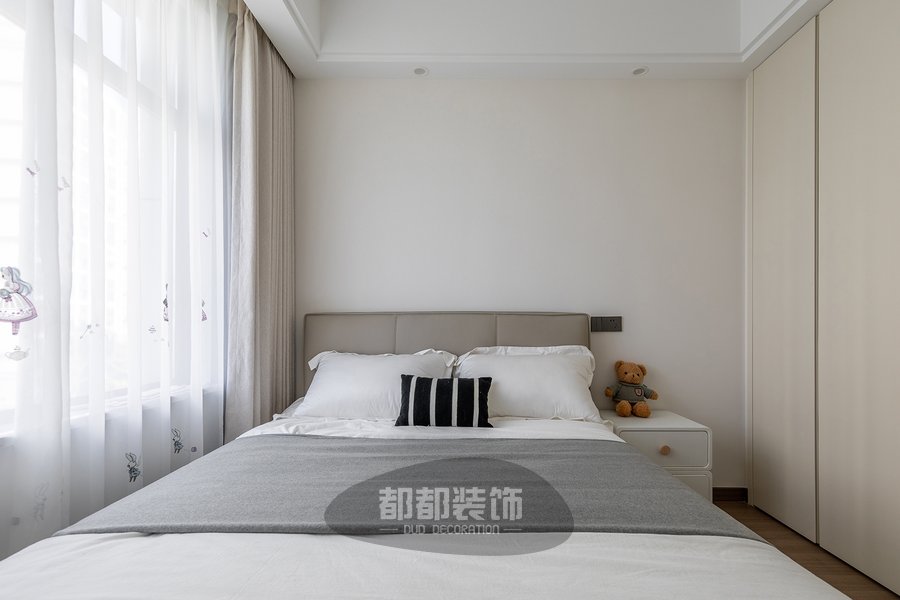 奶油色、白色、灰色,配比出一种清凉简洁的空间氛围,令步入者感受到由内至外的清爽惬意感,日光通过窗户倾泄而下,让偶尔来居的亲戚感受到融融暖意,产生宾至如归之感。