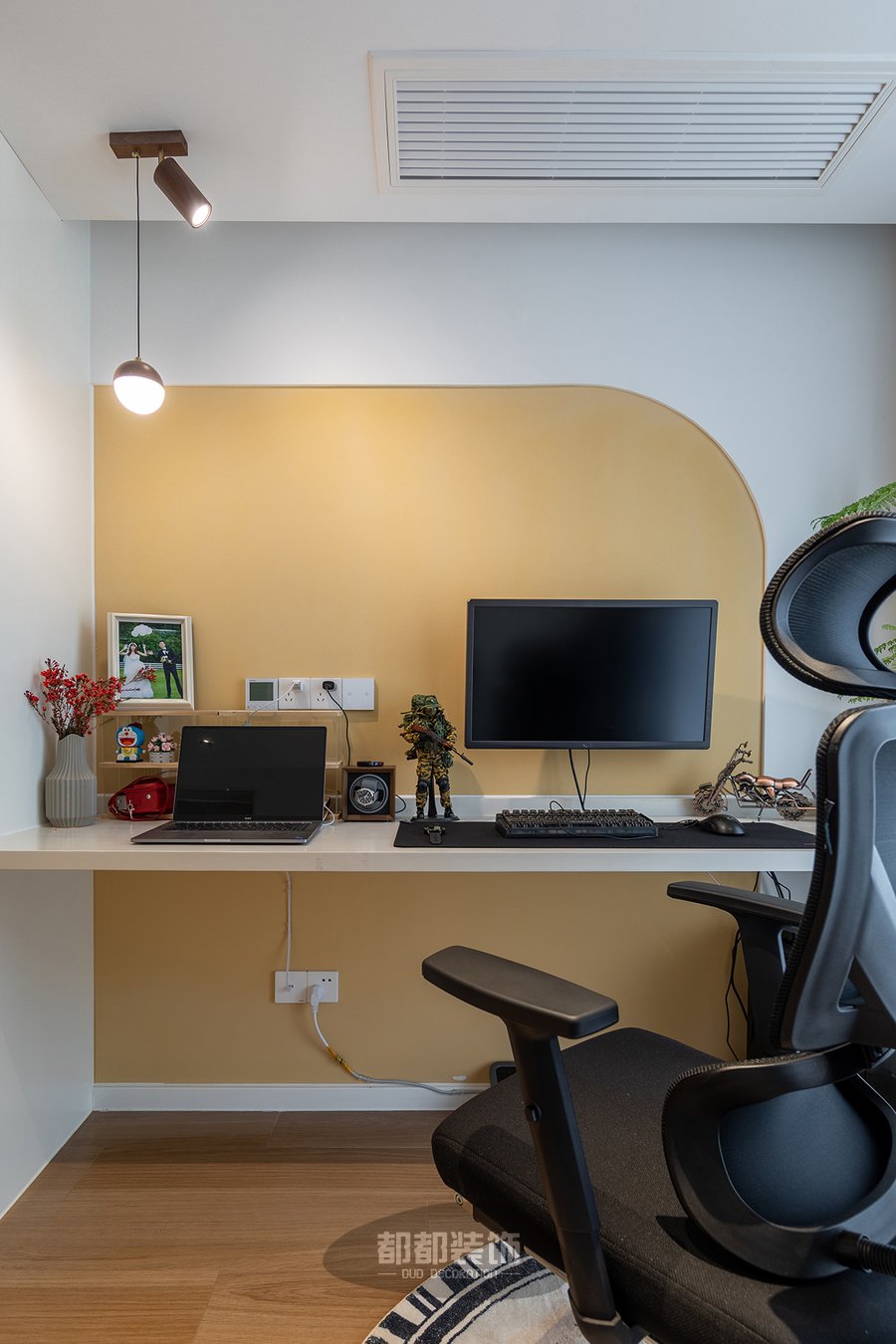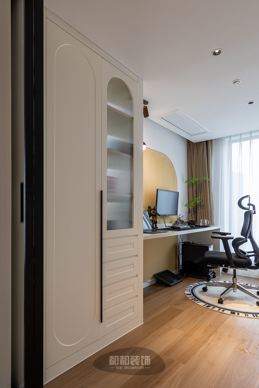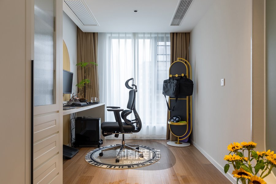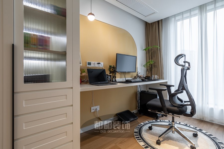 因为苏女士的职业关系,需要一个安静的环境来备课、上网课等,张先生也表示希望能有一个专门打游戏的地方,设计师就专门做出一间书房。