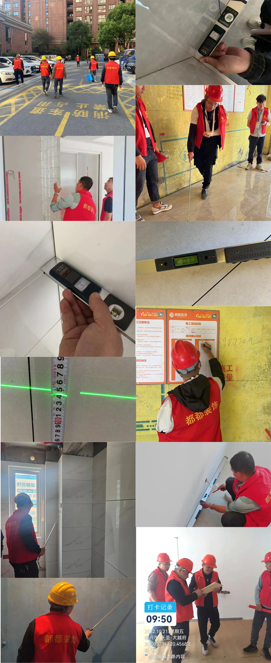 作为浙江省严肃家装的创导者,工地质量一直是都都装饰的重中之重。每周五例行巡检,为期一天的工地检查,监理们早早出发,对各城市店的在建工地进行细致的检查。