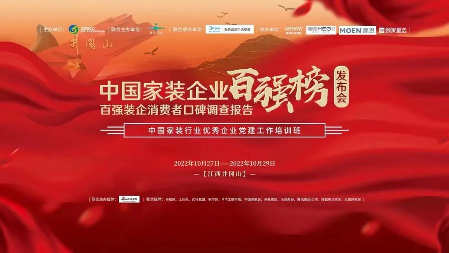 10月28日,由全国工商联指导,全国工商联家具装饰业商会主办,西海基石教育集团承办,美的家用中央空调联合承办的的“2022中国家装行业百强榜”暨“百强装企消费者口碑调查报告”发布会,在中国革命摇篮江西省井冈山市隆重发布,并于同日公布“2022中国家装行业百强榜”。