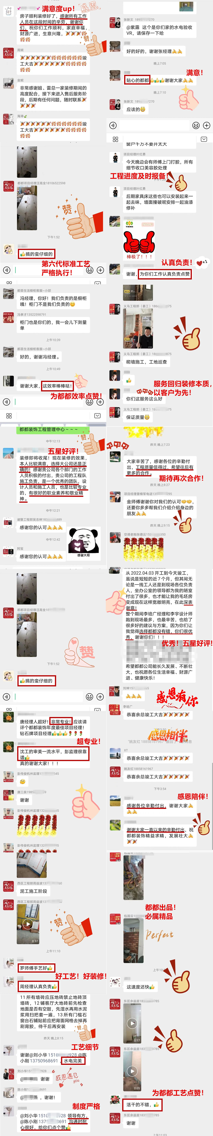 当然竣工并不代表都都服务的结束,“终身保修”目的就是给客户底气,关于售后的任何问题,在群里提出,也都能收获客服的快速响应。过硬的工艺和工程质量+真诚贴心的服务,是都都给客户的承诺!