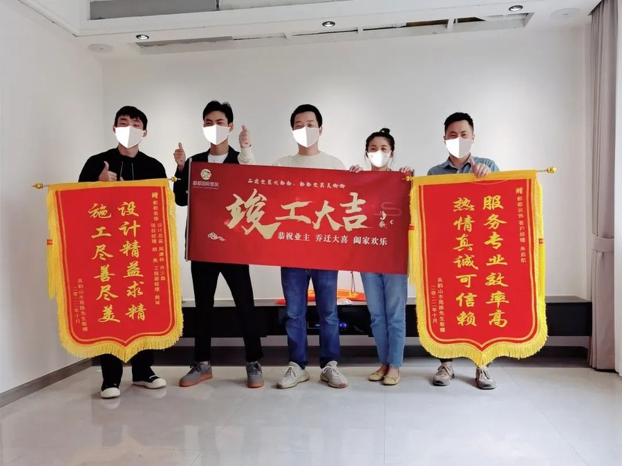 都都装饰收到的锦旗已经挂满了满满当当一整面墙,收到的称赞更是不计其数,但我们仍然为客户的每一次认可而心动。