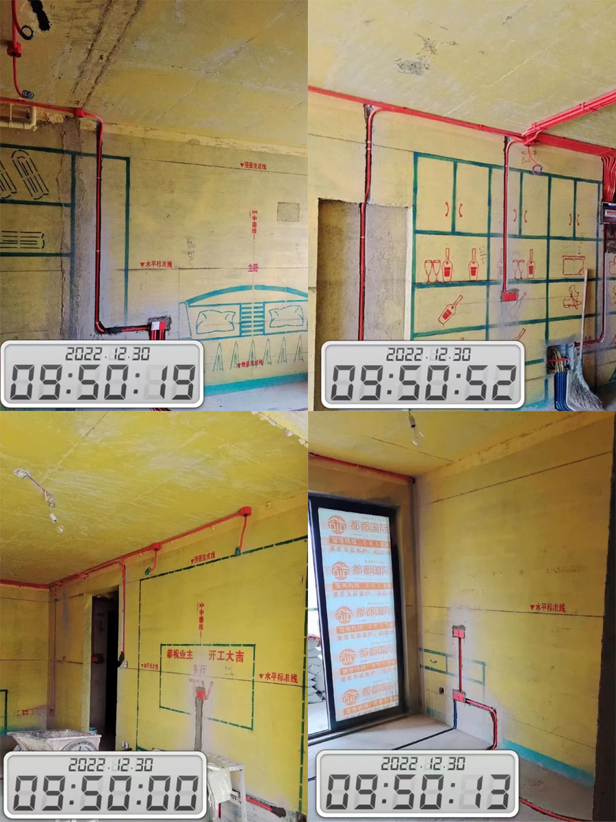 都都装饰始终把工地作为服务客户的重中之重,坚信好品质用工地说话!严格按照第六代标准工艺,墙面必须平直,铺贴必须锤实,强弱电必须零交叉……