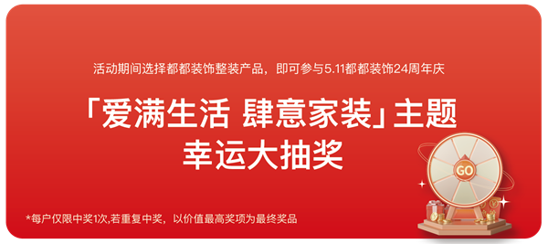 「爱满生活 肆意家装」主题大抽奖,百余项幸运大奖现场直抽,42城全门店同步线上直播,热度满爆,幸运邀您见证!