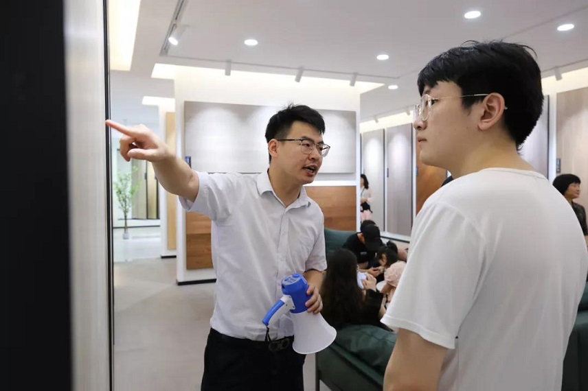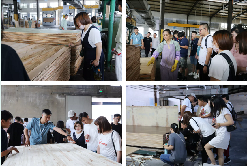 莫干山负责人带领大家参观了莫干山板材、地板的生产车间,走进车间,环境整洁、无气味,通过看、摸、对比,设计师与家装顾问都对莫干山地板精湛的生产工艺及严苛的生产环节有了一个深入的了解。