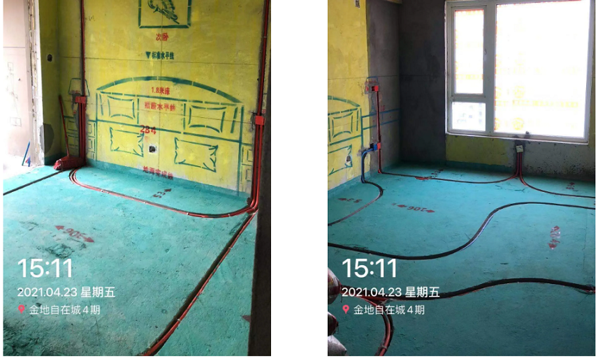 大弧弯工艺/ Check 强弱电零交叉,避免强弱电磁波干扰。后期有电路小改造的时候,不用大动水电;线路出现老化、短路情况,不需要敲掉整个水电,可以直接换线;二次装修可以直接换线,节省装修费用。