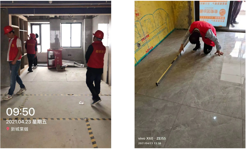 本次巡检,历时一天。各个城市店工程部分队走进小区在建工地,项目经理手机实拍发在都都装饰集团工程群,相对应小区房号+照片,有问题及时开整改单与罚单进行整改,在规定时间内整改完毕发在群里。(以下是项目经理们手机实拍图) 如果业主朋友想去工地实地考察,可以在后台回复“姓名+联系方式+想参观的工地“,我们会安排专业的客户经理带您看工地。