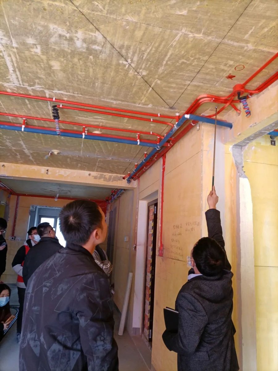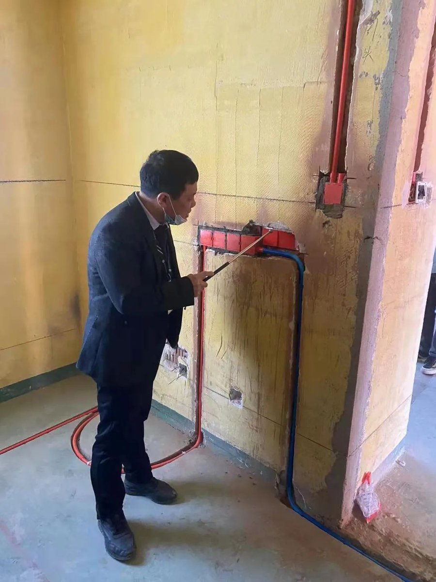 水电阶段的巡查过程中,巡查小组对水电的线管排布、线管穿线数是否达标等进行了详细检验。并不止一次强调:我们必须做到强弱电零交叉,大弯工艺必须达标。