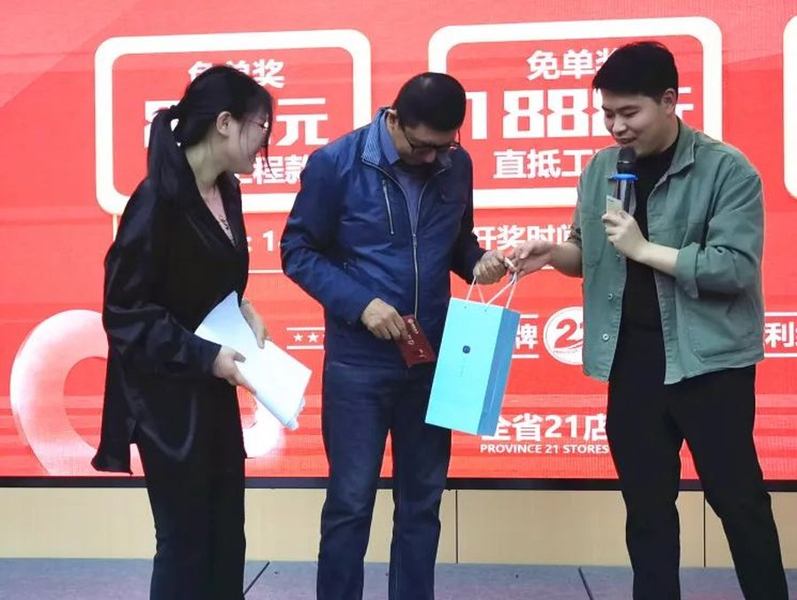 下午2点10分,2点20分,2点30分,分别揭晓惊喜好礼免单大奖!现场抽奖,现金直抵工程款,幸运会落在哪位天选之子的身上呢?我们直接来看看现场吧!