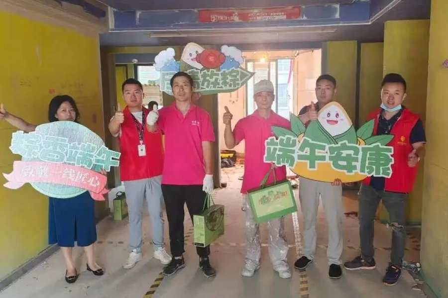 在工地现场,董事长都宜贵亲切地叮嘱工人们保重身体,一定要严守工程安全红线,注意施工安全,并给工人们送上端午礼品,以此表达对坚守在工地一线工人的祝福和谢意。