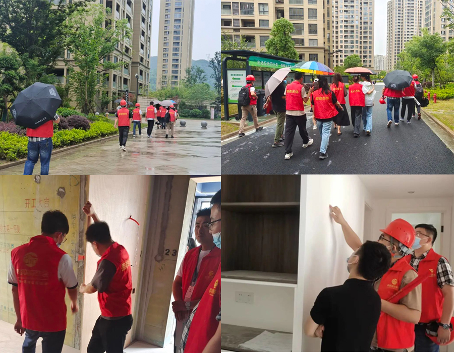 淅淅沥沥的梅雨季已然到来,又逢周五巡检日,一大早都都装饰各城市店的监理们就带领巡查小组成员,冒雨前往各在建工地,检查工程进度及质量。