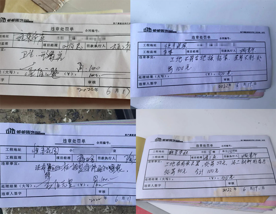 ▲ 工地巡查过程中,小到卫生形象,大到施工数据,发现问题立即开具罚单,责令整改!