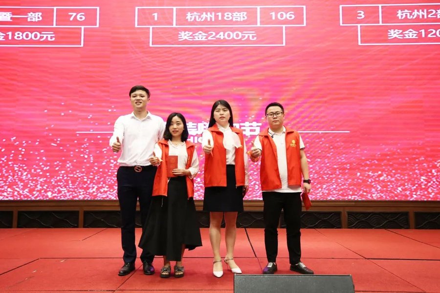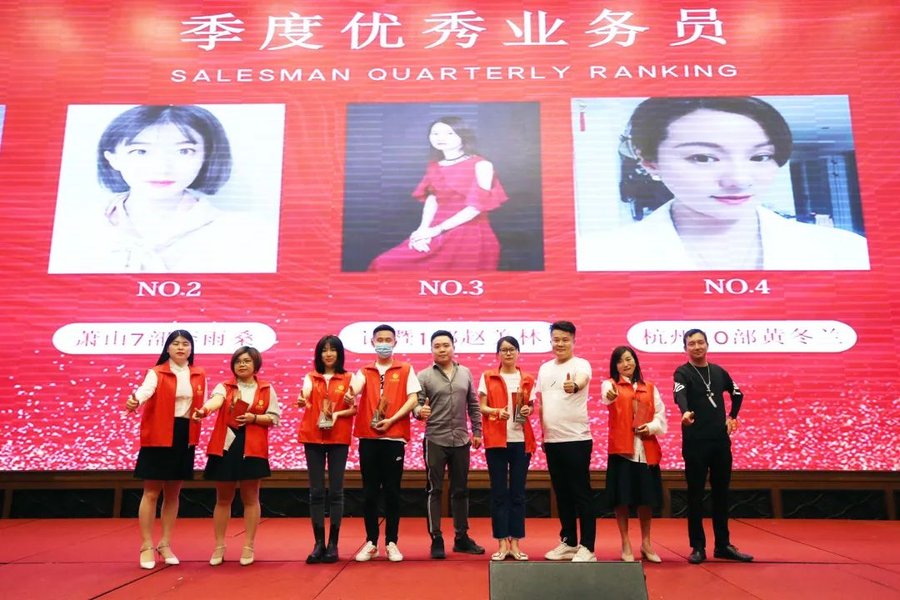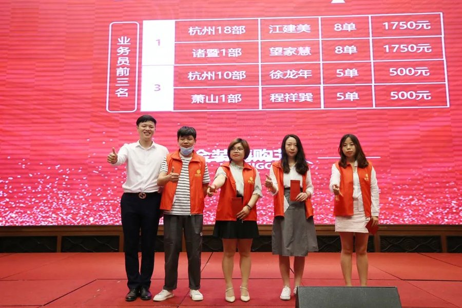 优秀业务员奖励:杭州18部江建美、诸暨1部望家慧、杭州10部徐龙年、萧山1部程祥巽