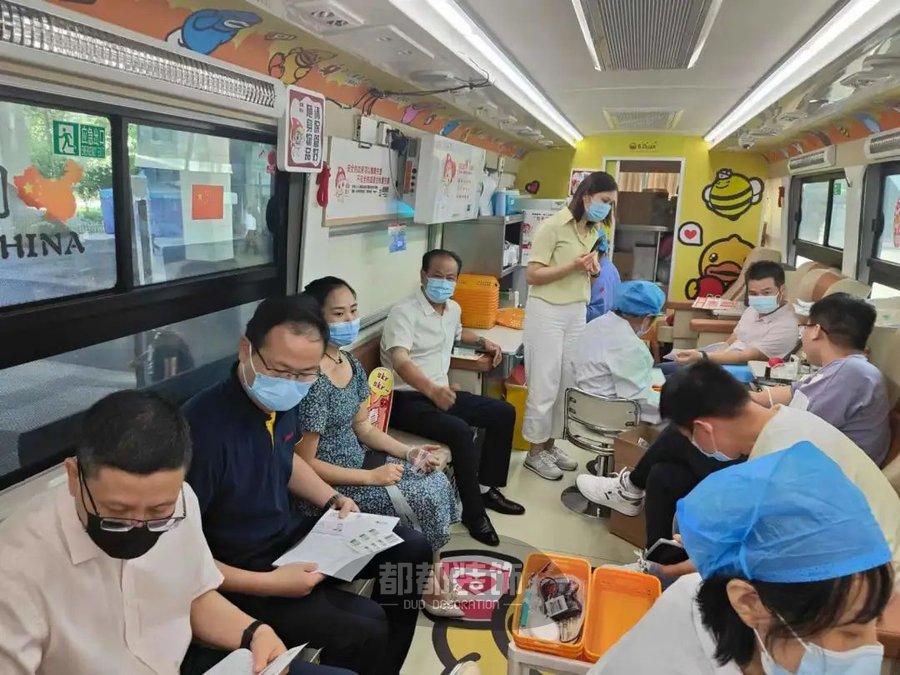 “献血献爱心,血浓情更浓”,无偿献血是大爱的传递,也是强烈社会责任感的体现,在党旗的照耀引领下,都都装饰的家人们将爱心源源不断地汇聚成河,用殷红的热血为党旗添上独属于自己的一抹色彩,用无私奉献的大爱托起一片生命的蓝天!