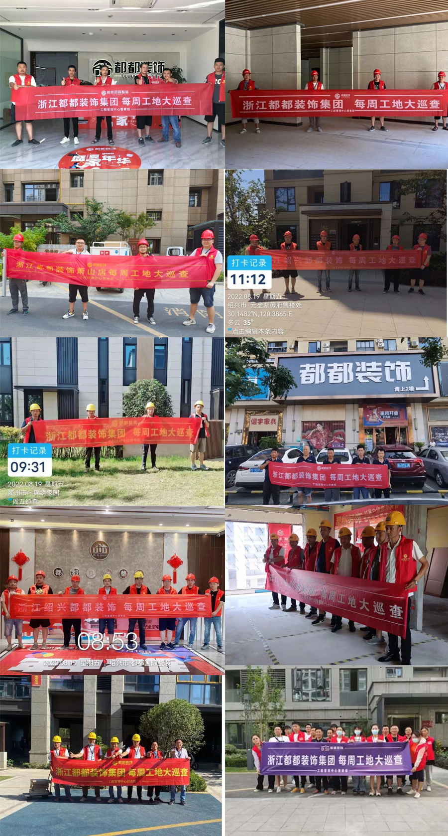 每逢周五工地巡检日,各城市店工程部的监理们都会提前做好准备,一大早就动身,前往各在建工地,巡查工程进度及工程质量: