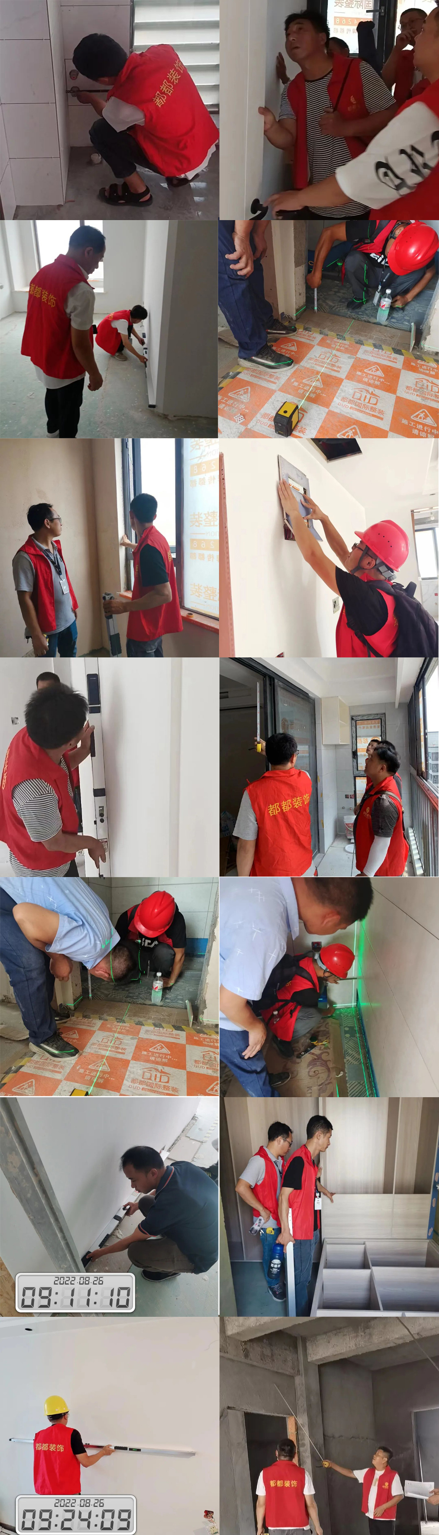 严格按照第六代标准工艺进行施工,秉承“施工以物说话”的原则,对工地现场高质量,严要求!监理们会借助测量工具对工地进行标准化考核,施工不规范,当场开罚单;工艺不达标,当场砸无赦!