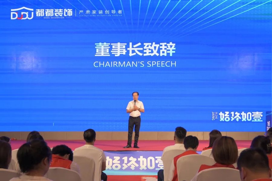 董事长都宜贵先生上台致辞。回顾过去,各位都都的家人们风雨同舟,砥砺前行,董事长对都都家人们的陪伴表示感恩。针对接下来的21周年庆典活动,董事长也为大家打气加油,慷慨激昂的致辞感染了现场的每一位家人!
