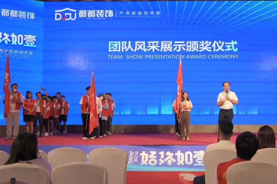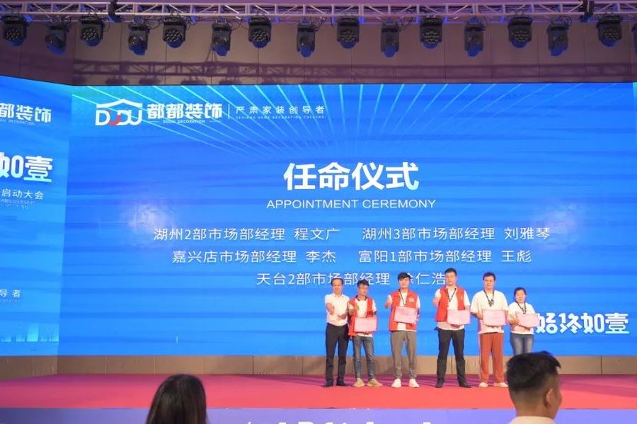 全体起立,诵读企业“四大心态”。接人待事时刻保持谦虚,沉着冷静,保持信心和冲劲,是每一个都都人从进入企业就开始学习并保持的精神。在一片诵读声中,浙江都都装饰集团21周年庆典全员启动会,正式开始!