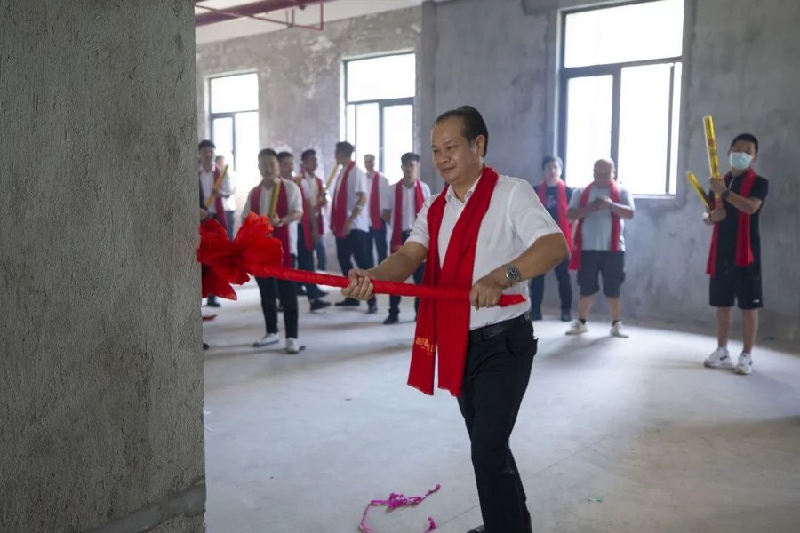 ▲ 董事长都宜贵先生挥下开工吉祥锤