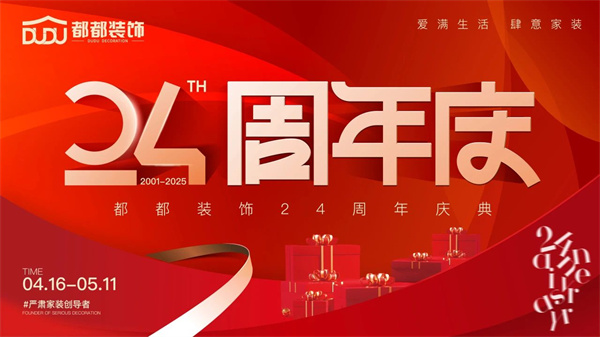五一小长假怎么过?出去玩→人从众,躺在家→没意思。不如来都都装饰嗨一下!!!都都装饰24周年庆典,40家直营店火热同庆,首见有礼+幸运抽奖+速定直送多重礼遇宠粉狂欢,放「价」开启