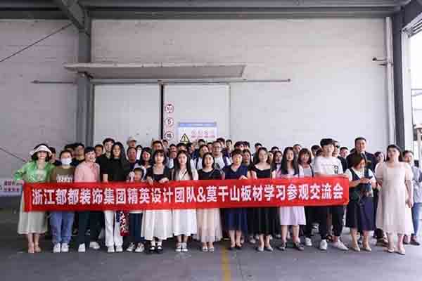为推进行业健康发展,建材与装企之间加强交流合作,浙江都都装饰集团杭州店全体员工走进浙江云峰莫干山地板有限公司参观学习交流,莫干山地板负责人以及各位领导热情接待并陪同参观。