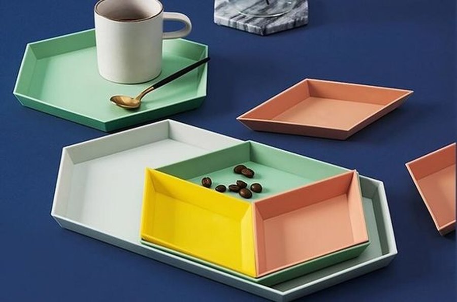 推荐一、彩色几何收纳托盘