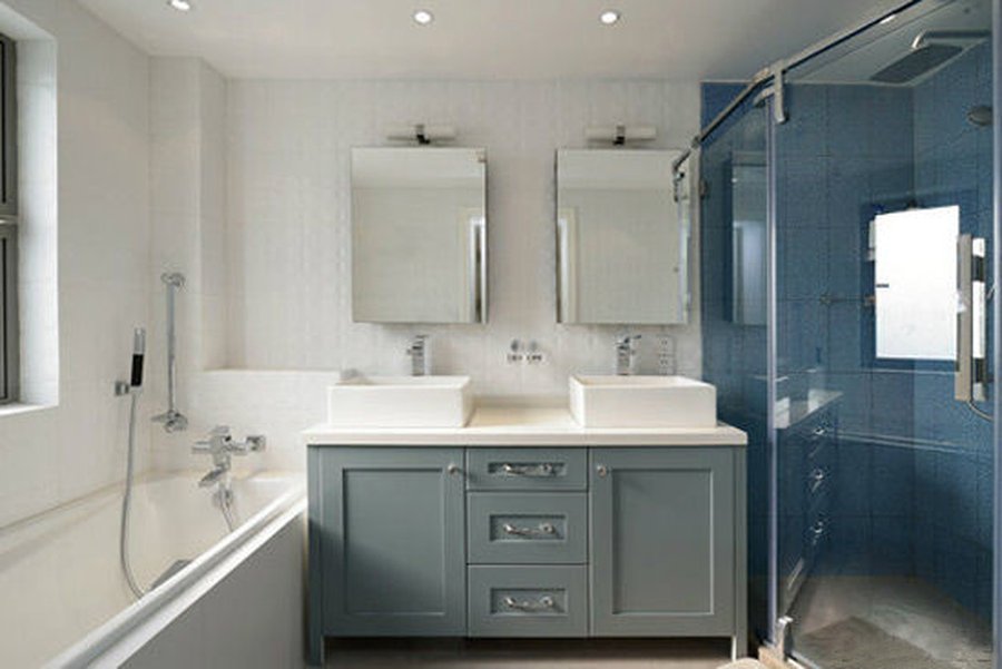 如果说洗漱台旁边已经没有可利用的位置,那可以考虑利用洗漱台上方的墙面,安装镜柜,一方面能满足物品收纳的需求,又能作为镜子,一物二用,挑选镜柜的时候更可以选择开门与敞开式结合的,敞开式的部分方便摆放常用的牙刷、梳子等物品,开门的部分则可以收纳需要防水的剃须刀、纸巾等,让空间有了更多可能性。