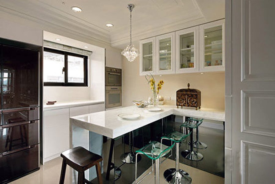 不少人埋怨厨房太小无法很好地利用,其实空间小不怕,合理地规划一样能打造出整洁又方便的厨房。墙地面装修上,小厨房建议采用单一明亮的材料,米白色的墙面砖配合浅咖啡色的防滑地砖,简单又显空间宽敞。