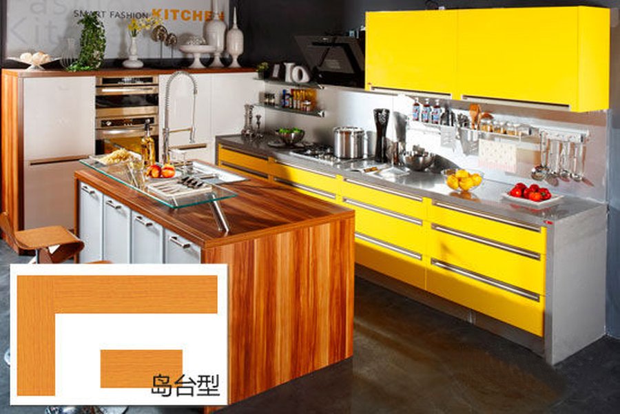 岛台式橱柜:到台式橱柜适合于厨房面积较大的房屋,一般以别墅为主,部分开放式厨房也能选择到台式橱柜。这种橱柜拥有更多的操作台面和储物空间,多人同时在厨房工作也能轻松互不干扰,岛台不仅可作为水槽、烹饪区、操作区,还可以作为吧台、上菜区,开放式厨房还可将岛台作为厨房隔断,一举两得。