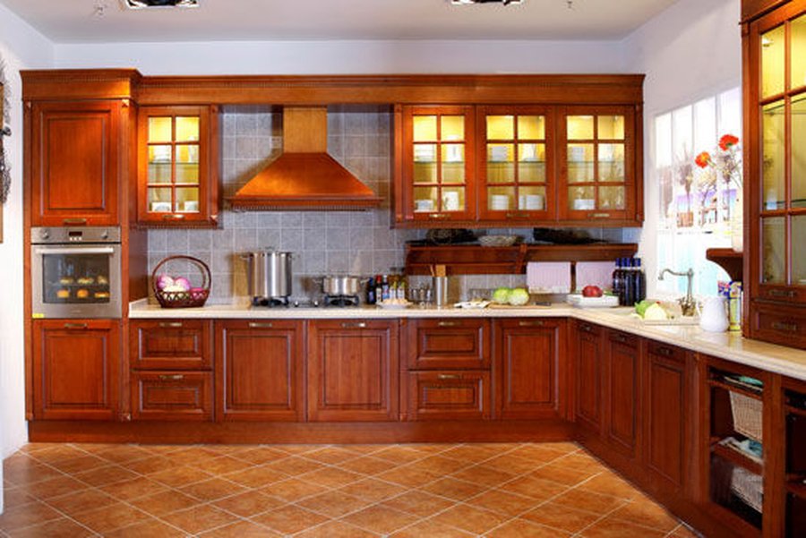 乡村风格厨房:乡村风格厨房的特点是宁静、质朴,这类风格的橱柜通常以实木为主,材质以松木、橡木最多,颜色以回归自然的木色、白色或米色为主,面板材料多以实木为主,适合温馨的小家庭使用。
