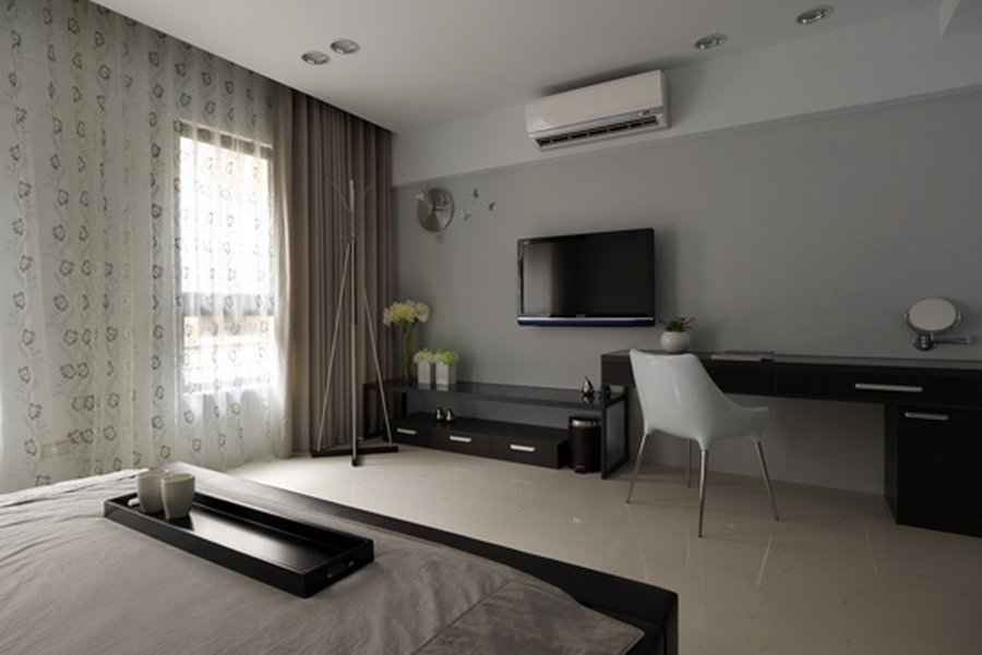 暗色有弱化空间大小的效果,因而不少人喜欢墙面大面积使用暗色系,以显深邃,但在小户型中大量使用暗色系尤其灰色系,会相反地让人有挤压感,心里上反而感觉空间缩小了。