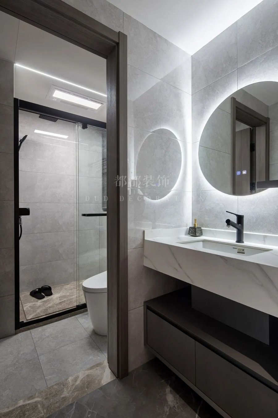 为防止卫浴间的水向外溢,门界要稍高于卫浴间内侧,卫浴间的门和地面的空隙要留的稍大一些,利于回风,如果是推拉门,建议在推拉门和卫浴的地面瓷砖间做一层防水。