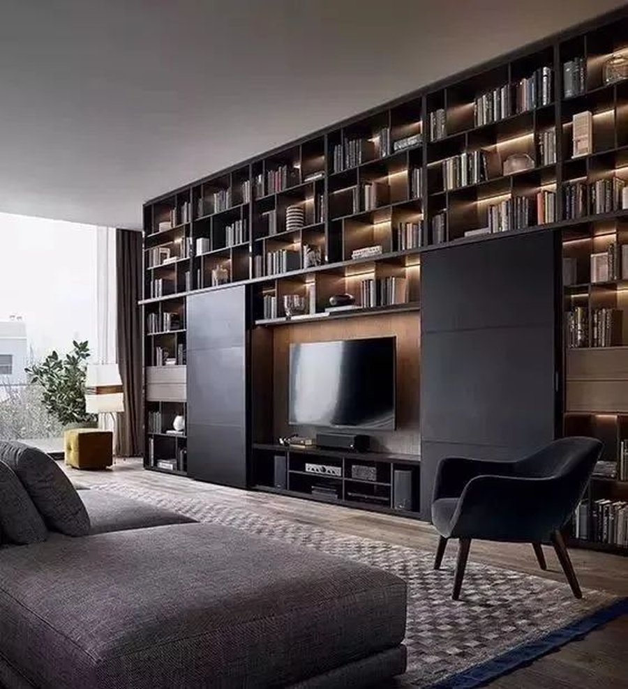 如果喜欢读书,想为家里增添一丝书香气,那把电视背景墙做成书架也是不错的选择。还可以根据自己的需求灵活选择,做成封闭式或者开放式的书架,在颜值上也超能加分哦!