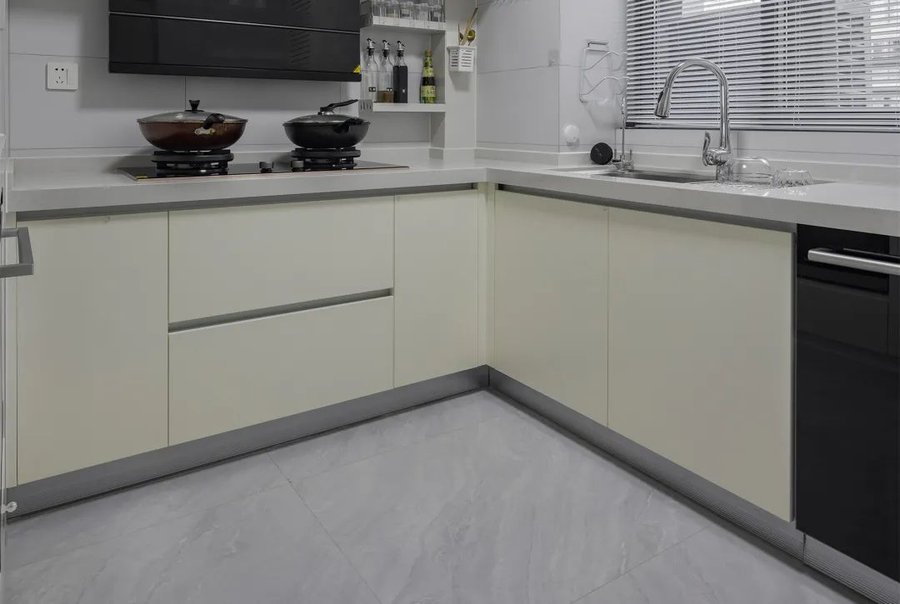 地柜的收纳空间和承重能力相较于吊柜来说都更强一些,所以碗碟、锅具等大而重的物品就可以放在地柜里。