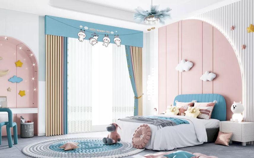 如客户一定要选择有图案的窗帘,可以建议选择带彩边的窗帘,它适用于各个居室空间,特别是儿童房。注意:如果居室已比较拥挤,挂了很多画,地毯、杂乱的靠垫颜色的话,请选择纯色窗帘。