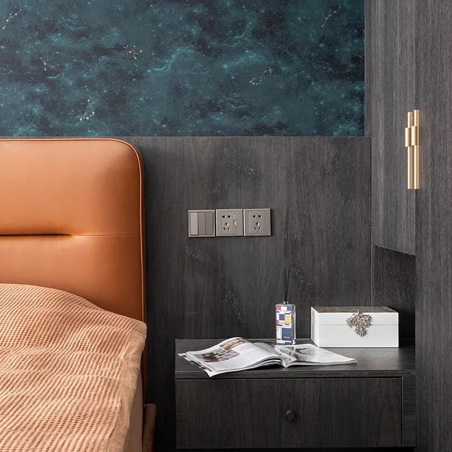 床头柜两边高于柜子的地方需要各留出至少1个插座,如果有台灯的话,需要两边额外各预留1个插座。