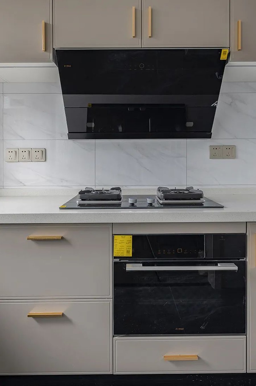 除去冰箱、蒸烤箱、消毒柜、洗碗机这些固定位置的家电各需要1个插座外,厨房至少还要再考虑3组插座,每组2~3个,用于小家电比如电饭锅、微波炉、高压锅等等的使用。